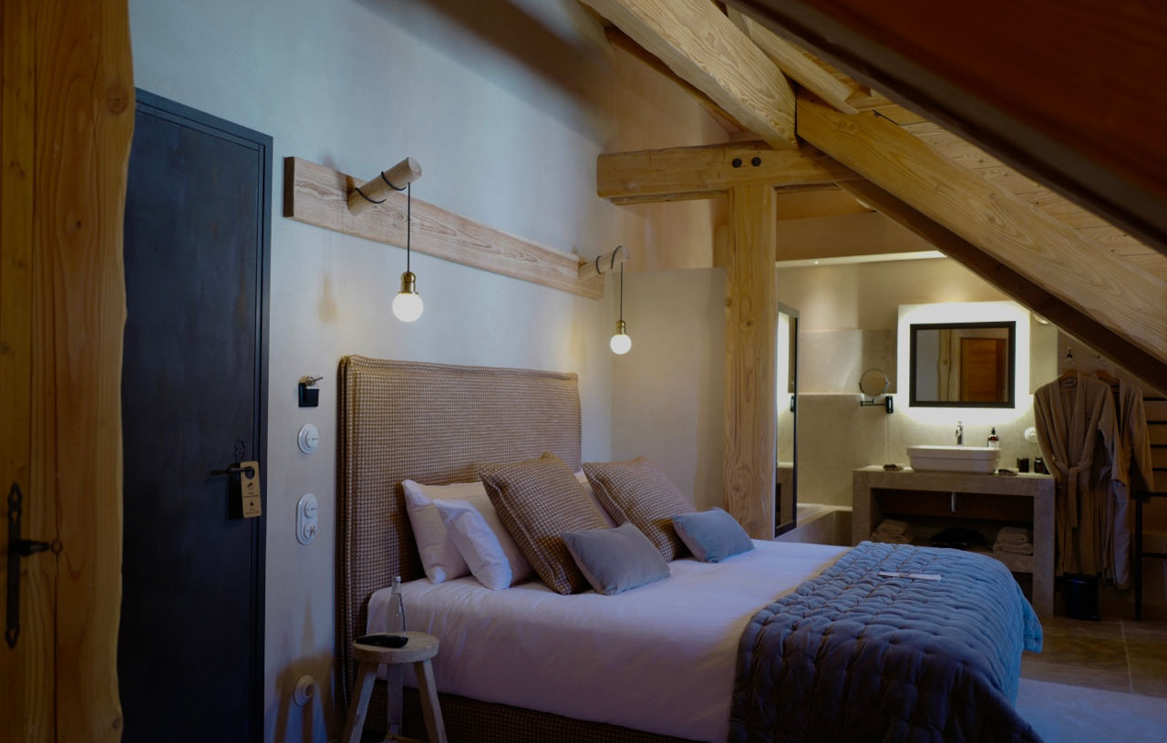 La Chambre 9, nichée au cœur de l’hôtel Le Prieuré, incarne un luxe authentique pour votre séjour à Pra Loup. Elle dispose d’un lit King size, d’une salle de bain avec baignoire et de WC séparés.
